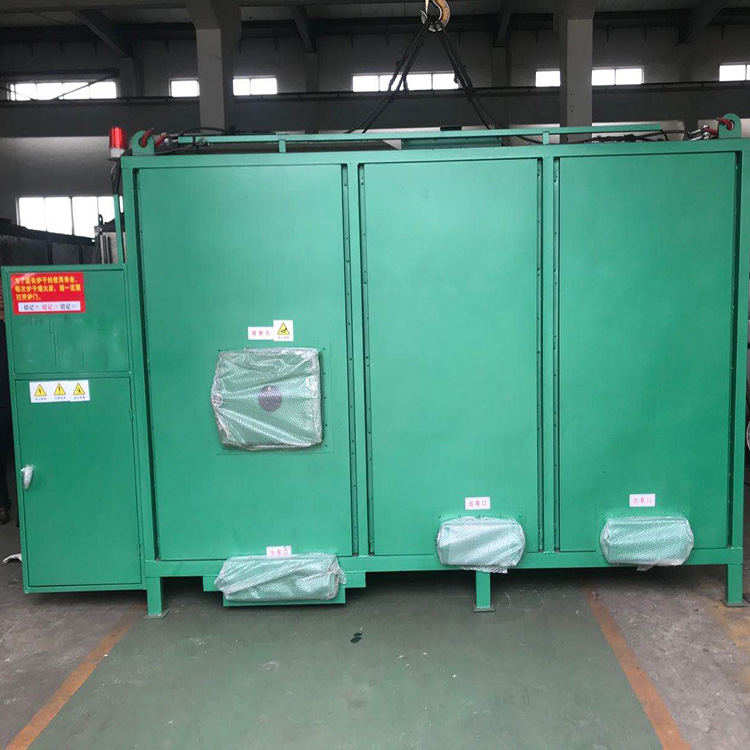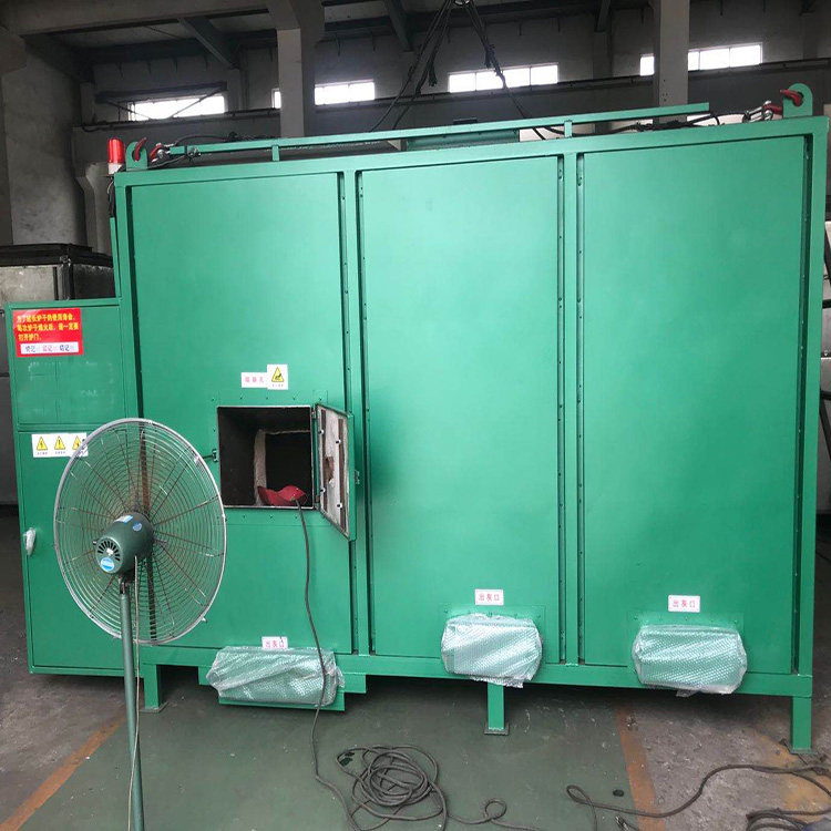 熱風爐所使用的燃生物質由上料斗裝置裝入進料斗,再由條爐排將生物質帶入燃燒段。在燃燒段中生物質均勻燃燒,燃燒后的生物質渣由出渣口排出爐外,而燃燒后的高溫煙氣由引風機帶至換熱段,在換熱段中與由主風機送入的冷空氣進行熱交換,換熱后的煙氣由引風機送至煙囪排出。而經過熱后的熱空氣經過管道送至用熱設備。在此過程中,數字式溫度顯示控制器對熱風出口溫度、爐內溫度以及用熱設備溫度進行顯示并通過對風機及爐排的開關等方法來自動調節烘房溫度,使之符合工藝要求。燃燒設備采用輕型鏈條爐排,由多級或無級調速機構傳動,操作方便調節靈活,由于沿熱風爐縱向不同燃燒區段的燃燒強度不同,所需風量也不同,所以沿縱向爐排下設有獨立風室,空氣由鼓風機鼓入總風道后,經過調風機構進入爐排下部各風室,各風室獨立配風,配風調節精確、燃燒控制合理。